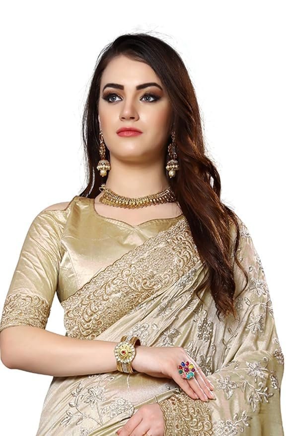 Beige Mayo Silk Zari Resham Stone Embroidery Work Saree with Blouse Piece