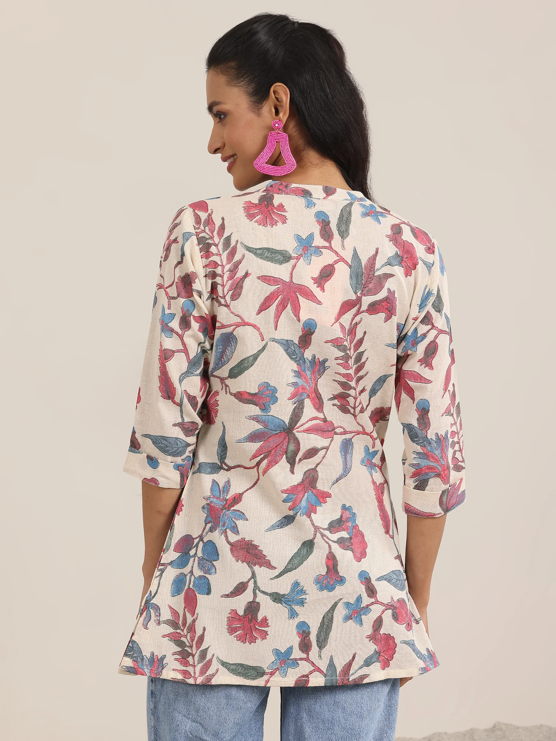 Multi Printed Cotton Straight Short Kurti